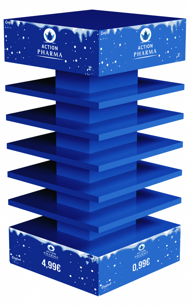 La gamme Action Pharma a été pensée avec des pharmaciens titulaires, à l’écoute des besoins des clients. Votre display saisonnier vous accompagnera et sera adapté à vos plus belles périodes de l’année! Deux rendez-vous par an avec des nouveautés permanentes et attrayantes.